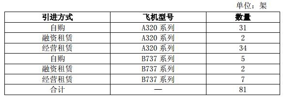 (自购的31架A320系列飞机中包含了9架与我公司全资子公司华瑞租赁开展经营租赁的飞机和2架与华瑞租赁开展融资租赁的飞机;自购的5架B737系列飞机均是与华瑞租赁开展经营租赁的飞机。)