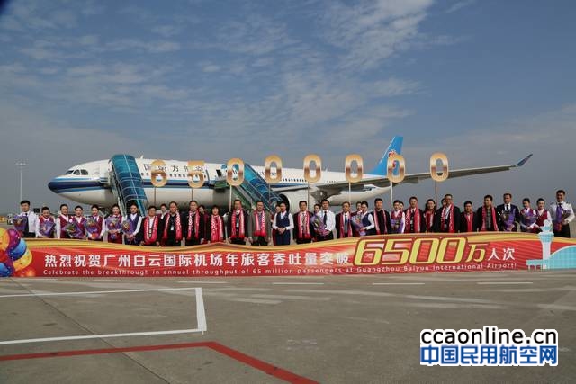 民航中南管理局、民航中南空管局、民航广东监管局、广州市空港委、白云机场股份公司以及驻机场边检海关和卫生动植检疫等单位代表出席了简单而热烈的见证仪式。白云机场为该航班全体旅客送上了纪念围巾等小礼物,更提供“特别版”摆渡车——“白云机场年旅客吞吐量突破6500万人次旅客专列”运送旅客离开。