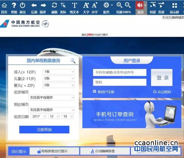 12月19日,南航开通无障碍网站,为视力障碍人士提供专业的网络服务。