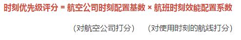 第三,明确每家公司每条航线的时刻选择排序。这才是核心。怎么定量的呢,?很科学,先对人(航空公司),再对事(申请的航线),不得不说,人、事分开打分,既讲道理,也很有新意。先上个公式。