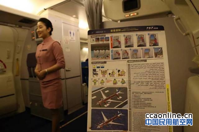 南航新疆公司的机上安全须知有三种文字,中文、英文、维语