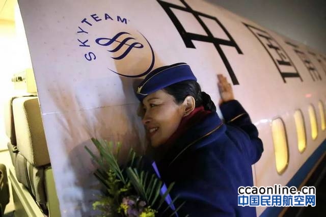 乘务长张汉云像对待自己的孩子一样,抚摸这架即将远去的波音757客机