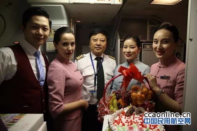 谢幕飞行机组阵容强大,4位机长执飞 右为南航新疆分公司总经理富璞岩,他是757和787双机型机长