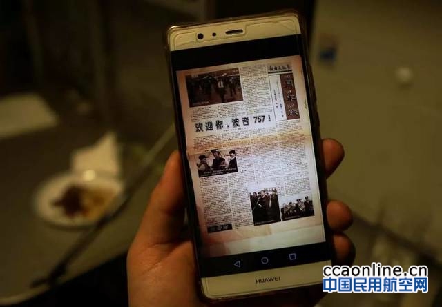 乘务长的手机里保存着1997年首架757来到新疆时的报纸