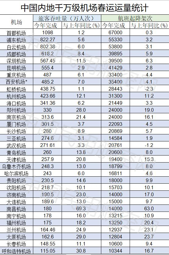 西安机场未公布数据,表中数据为其之前预测数据