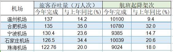 这五座机场今年均有望步入千万级机场序列。