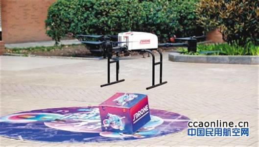 京东无人机载着货品精准降落在西安电子科技大学长安校区 摄影:《西安晚报》王赫