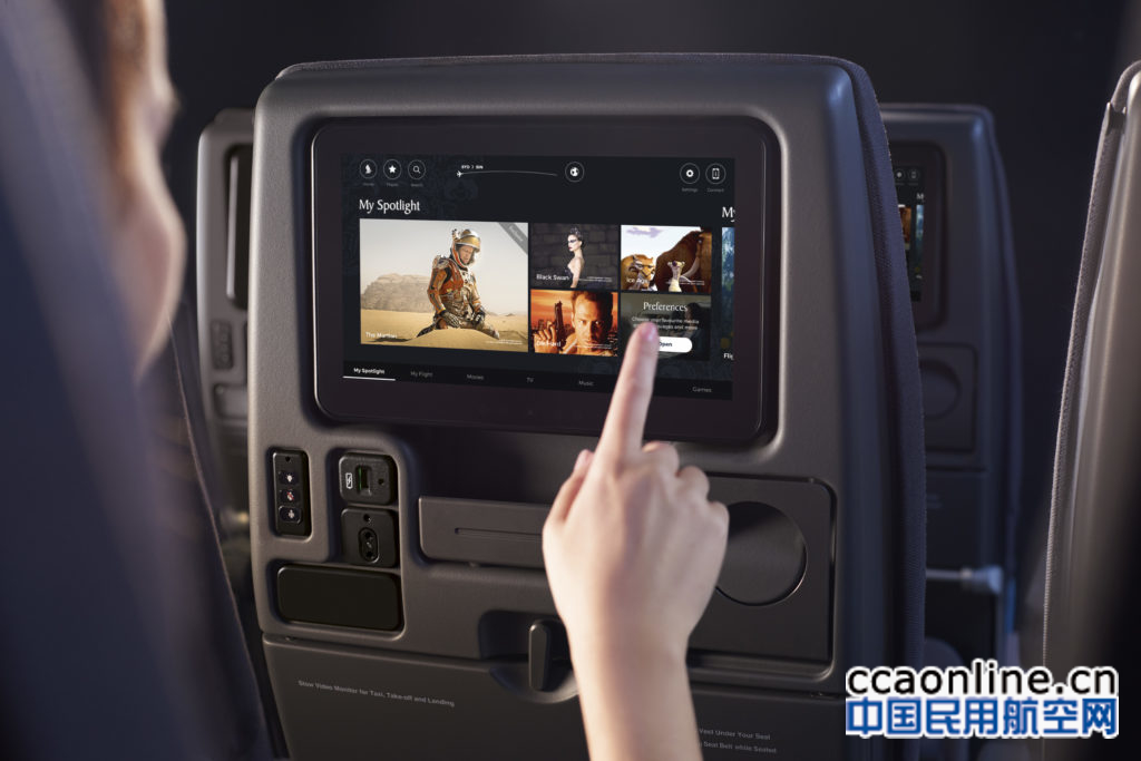 经济舱乘客还可通过个人11.6英寸全高清触摸屏显示器享受经过改进的娱乐体验,更有“银刃世界”为乘客提供一千多部精选电影、电视节目、音频节目和游戏。