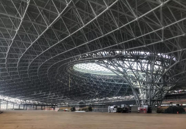 在航站楼的屋面网架施工阶段,面对大面积的网架、大规模组件、高难度支撑等难题,项目团队多次邀请钢结构专家进行论证,并用BIM技术进行模拟,最终确定了“分区施工、分区卸载、总体合龙”的原则。同时引入使用计算机控制液压同步提升技术、数字三维仿真模拟技术、测量机器人、三维扫描检测、三维空间坐标测量、超声波无损检测等先进技术和设备。仅用80天时间实现钢网架结构成功封顶,提升精度差控制在±1毫米以内,19万余米焊缝长度的现场焊缝探伤一次合格率达100%。