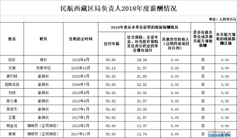 中国民用航空局披露民航局直属企业负责人2018年度薪酬 新闻 政府机构头条 头条 相关 局方公告 政府 19年11月29日 编辑 hz 取消关注 关注 私信 根据《人力资源社会保障部办公厅关于做好中央企业负责人2018年度薪酬备案和信息披露工作的通知》(人社厅函〔2019〕131号)要求,现将民航局直属企业(首都机场集团公司、民航西藏区局)负责人2018年度薪酬信息公开披露(详见附件)。 特此通知。 民航局人事科教司 2019年11月28日 民航局