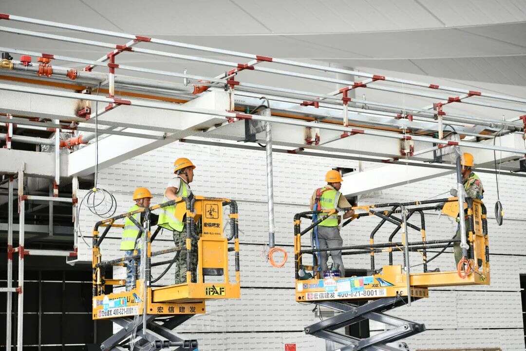 在乌鲁木齐机场改扩建工程施工现场可以看到项目主体已完工,工人们正在进行航站楼室内装修作业。乌鲁木齐机场改扩建工程建设指挥部总工程师周俏介绍说:“乌鲁木齐机场改扩建工程目前航站楼交通中心主体已经全部完工,航站楼装修完成90%,正在进行设备的安装调试,预计2024年机场工程全面完工。”