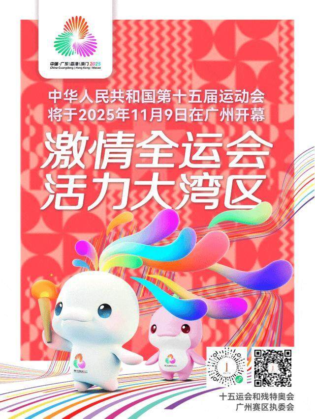 OCR:中国·广东雷港澳门2025 hoangodspisgkeng/eoca 中华人民共和国第十五届运动会 将于2025年11月9日在广州开幕 激情全运会 活力大湾区 十五运会和残特奥会 广州赛区执委会