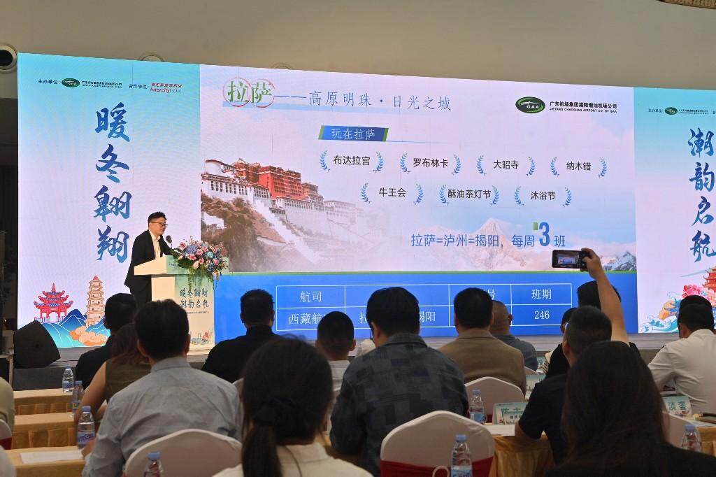 10月22日,以“暖冬翱翔 潮韵启航”为主题的2025年冬春航季航班推介会在潮汕历史文化博览中心举行。活动在充满地方特色的英歌舞中开场,来自汕头、揭阳、潮州三地的文化广电旅游体育局、航空公司、旅行社代表齐聚一堂,共同了解新航季的出行新变化,共话民航发展新篇。