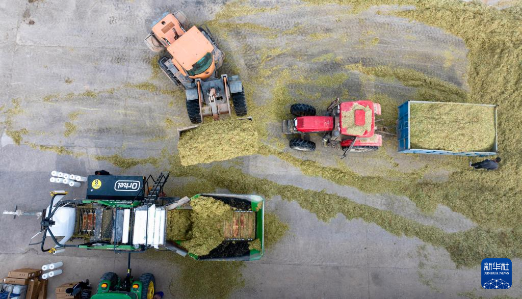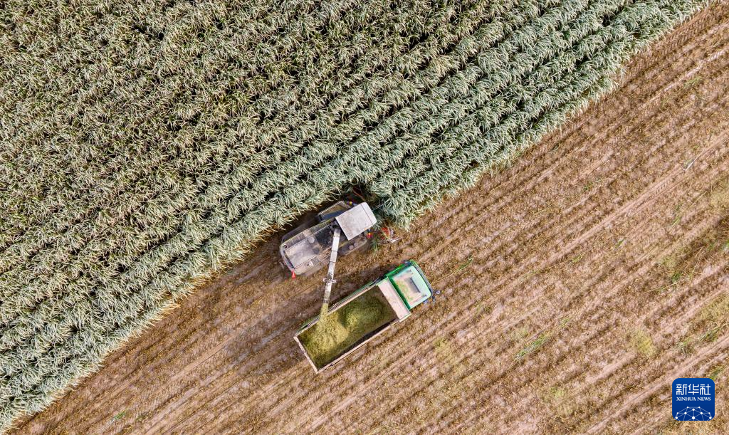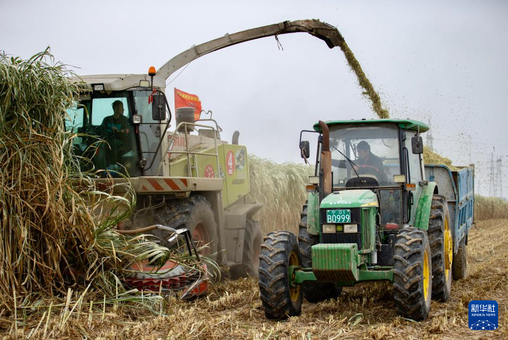 眼下,宁夏银川市永宁县闽宁镇种植的巨菌草进入收割期,当地农户出动机械收获巨菌草,田间一片繁忙景象。据了解,巨菌草收割后将作为青贮饲料,助力当地养殖业的发展。