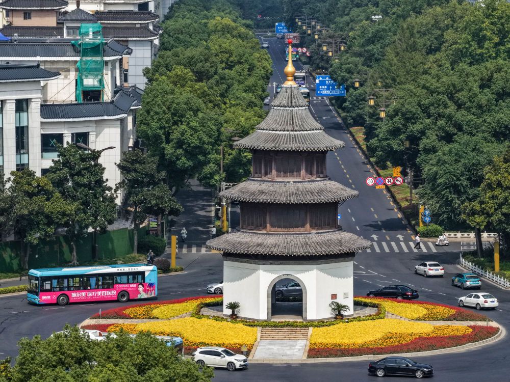这是10月11日拍摄的江苏省扬州市文昌阁(无人机照片)。