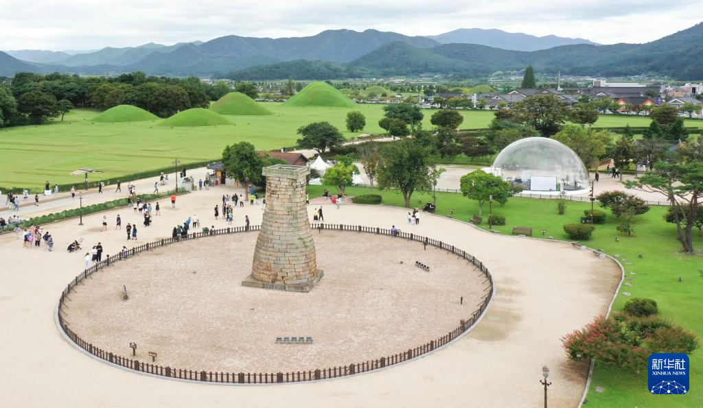 9月21日,游客在韩国庆州的历史古迹瞻星台附近游览(无人机照片)。新华社记者姚琪琳摄