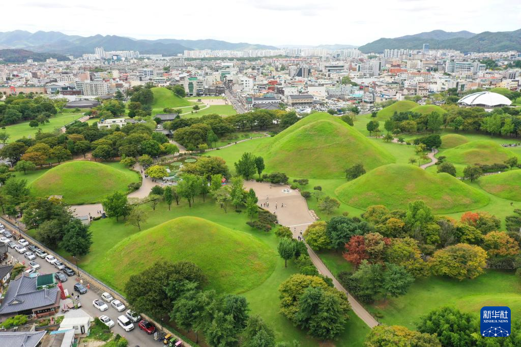 9月21日拍摄的韩国庆州的大陵苑景区一带(无人机照片)。新华社记者姚琪琳摄