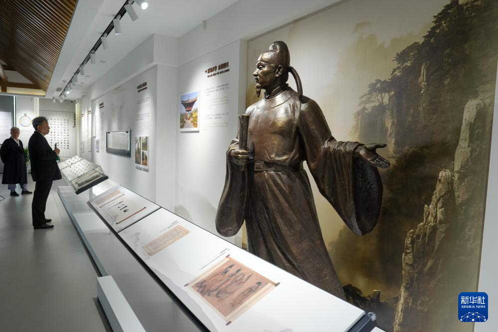10月15日,韩国庆州崔氏中央宗亲会组织的代表团在江苏省扬州市的崔致远纪念馆内参观。新华社记者 李博 摄