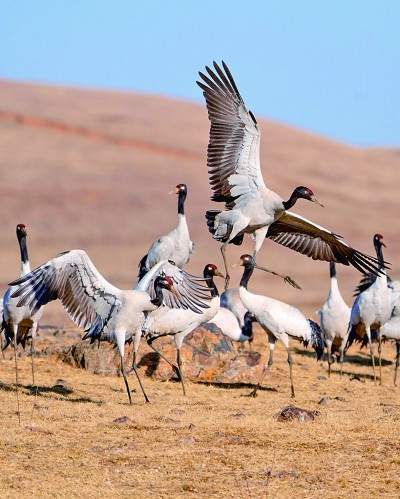 云南省大山包黑颈鹤国家级自然保护区越冬的黑颈鹤。光明日报记者 徐谭摄/光明图片