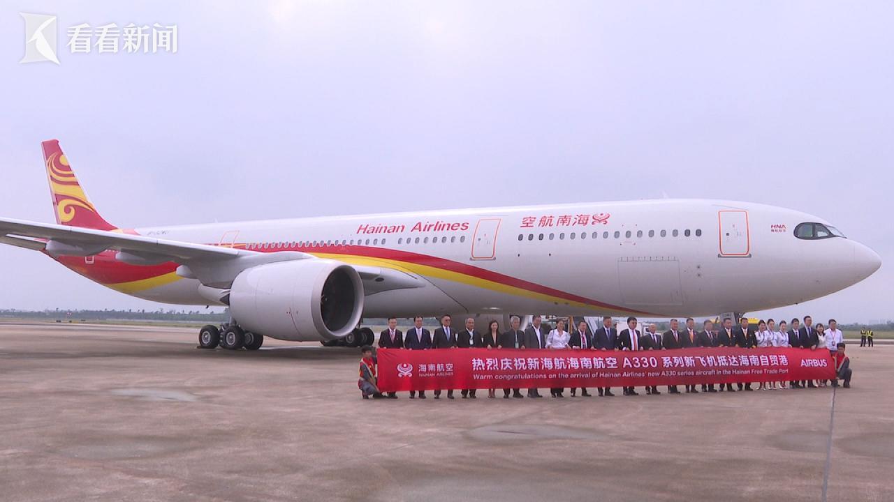 OCR:看看新闻 空航南海 HainanAirlines ANA 00006060 00008060000880080 热烈庆祝新海航海南航空A330 系列新飞机抵达海南自贸港 海南航空 AIRBUS
