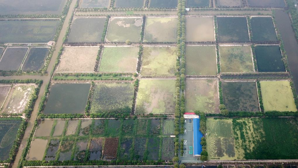 這是大通湖水生植物産業示範園,園內種植了多種水生植物(無人機照片)。新華社記者 陳振海 攝