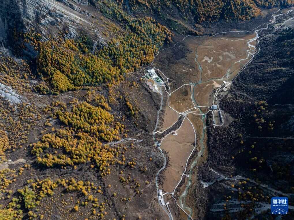 俯瞰冲古寺和冲古草甸(10月25日摄,无人机照片)。