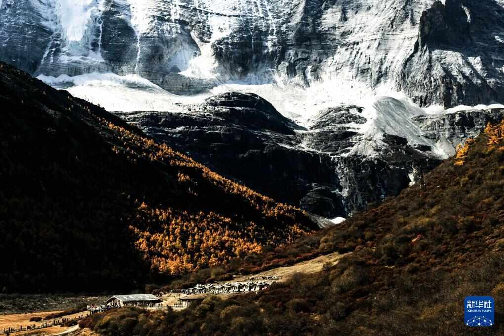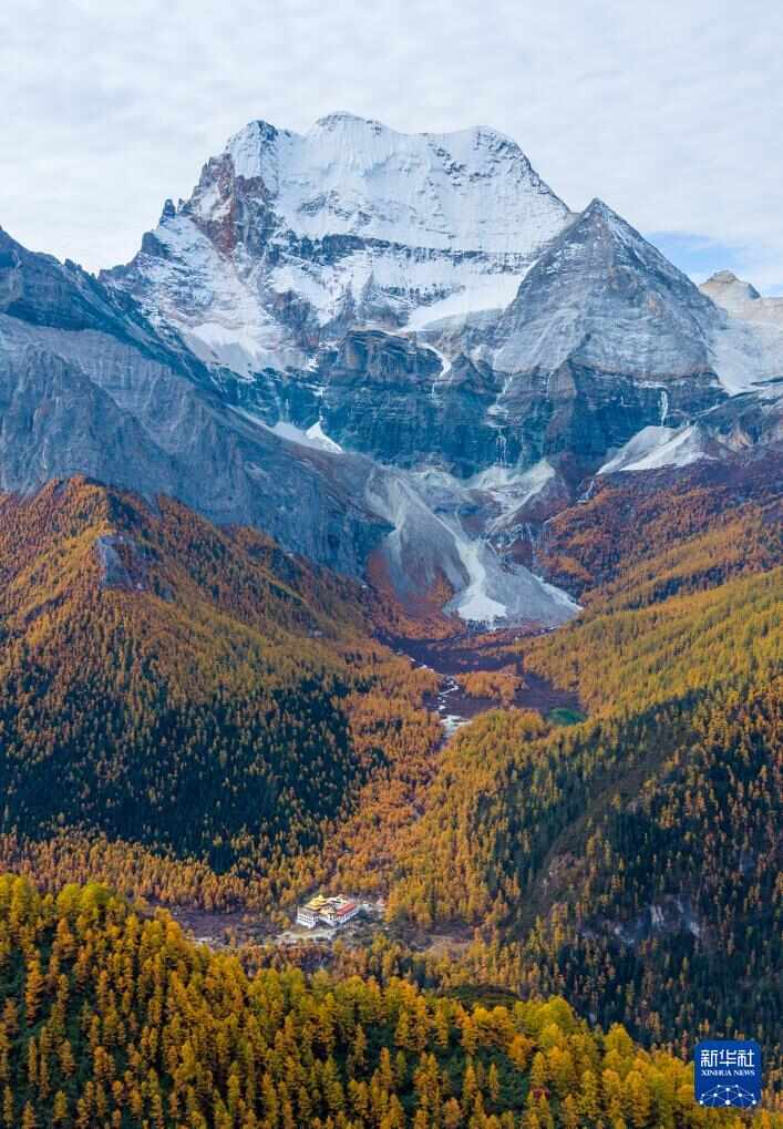 稻城亚丁景区层林尽染(10月28日摄,无人机照片)。