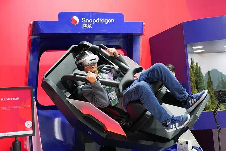 A visitor tries an XR device at the Intelligent Industry and Information Technology exhibition area of the eighth China International Import Expo (CIIE) in east China’s Shanghai, Nov. 6, 2025. (Xinhua/Zhang Ziyu)