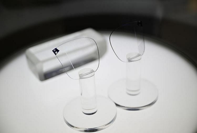Lens for AR glasses are pictured at the Intelligent Industry and Information Technology exhibition area of the eighth China International Import Expo (CIIE) in east China’s Shanghai, Nov. 6, 2025. (Xinhua/Cai Xiangxin)