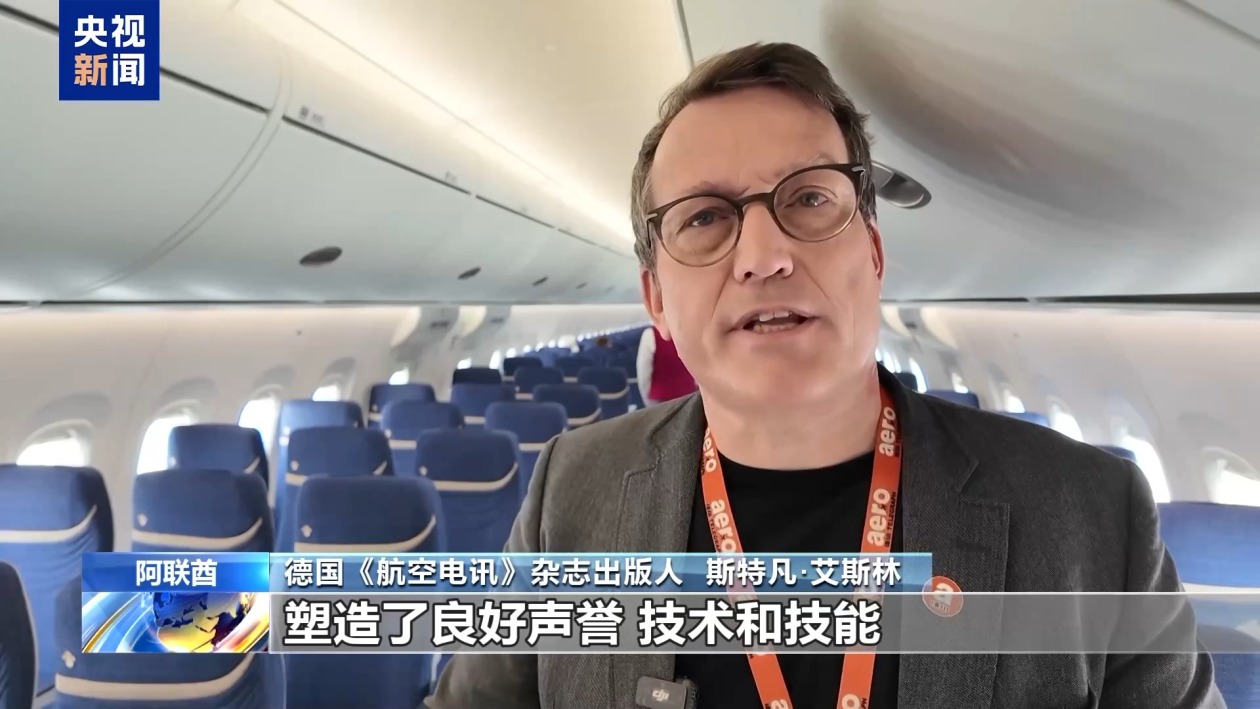 德国《航空电讯》杂志出版人 斯特凡·艾斯林:中国的飞机生产商经过多年的积累,塑造了良好声誉、技术和技能,这是中国生产的第一款真正能与西方媲美的大型客机。