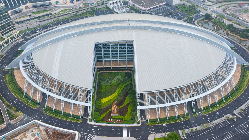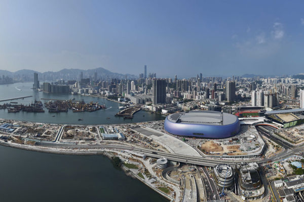 ↑这是举办全运会击剑、七人制橄榄球和男子手球等比赛的香港启德体育园(2024年12月8日摄)。