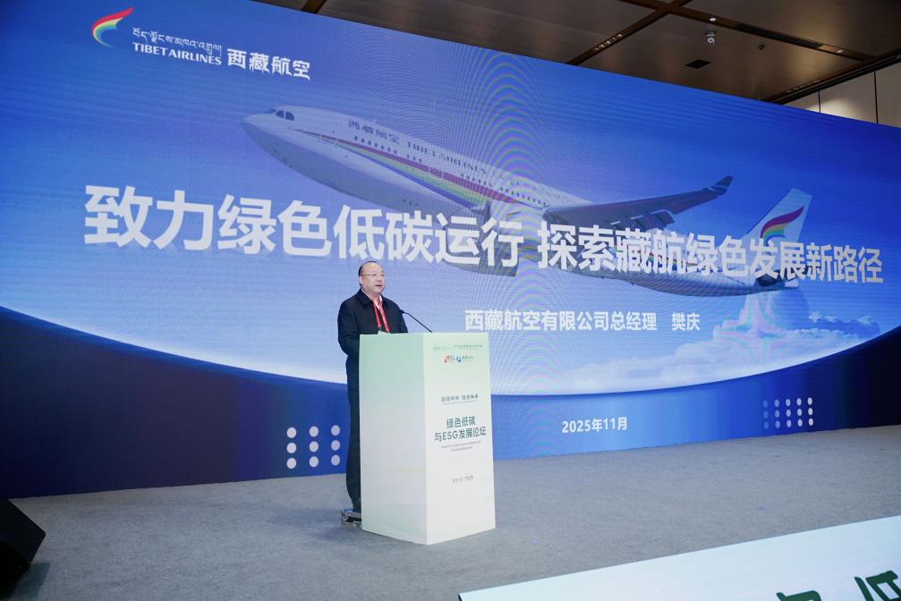 西藏航空有限公司黨委副書記、總經理樊慶介紹了西藏航空通過提高航線與飛行效能、推動可持續航空燃油燃料應用、提升地面運營綠色化水平等方式,努力構建低碳高效可持續的航空運輸體系的成效。