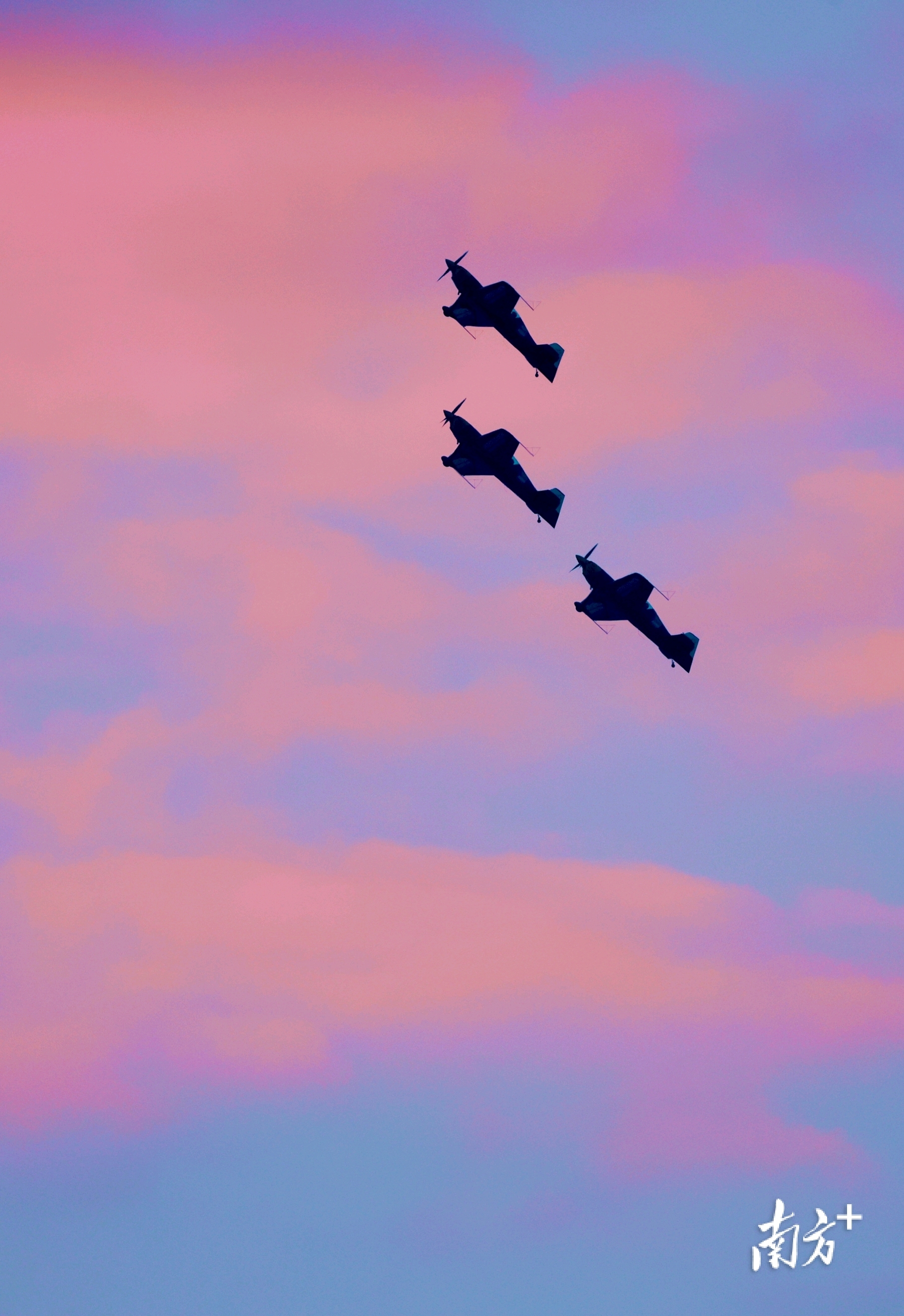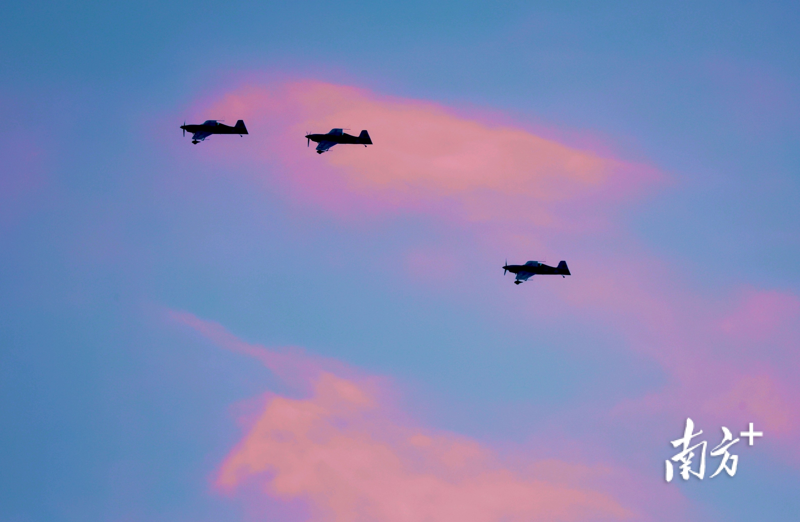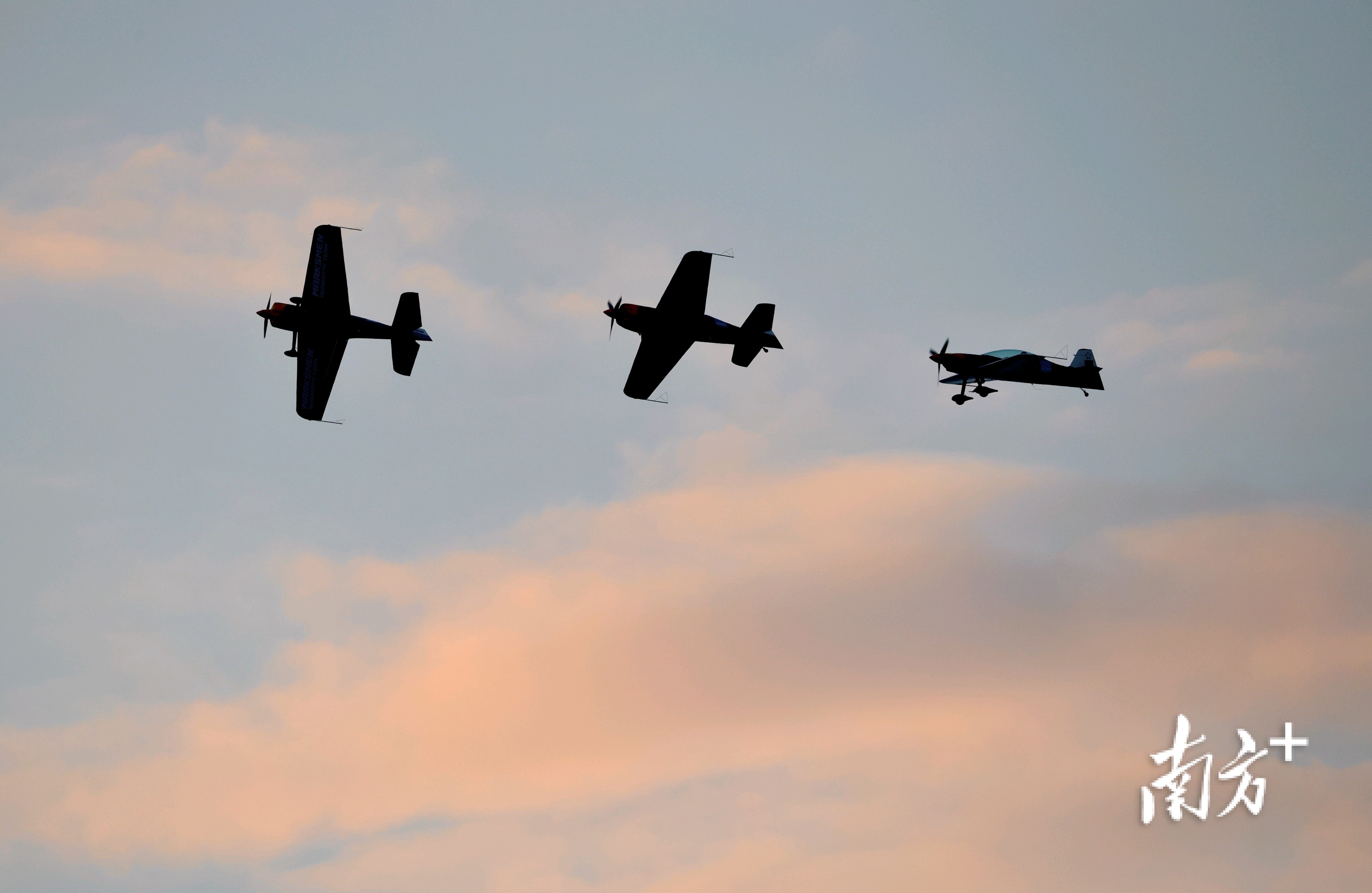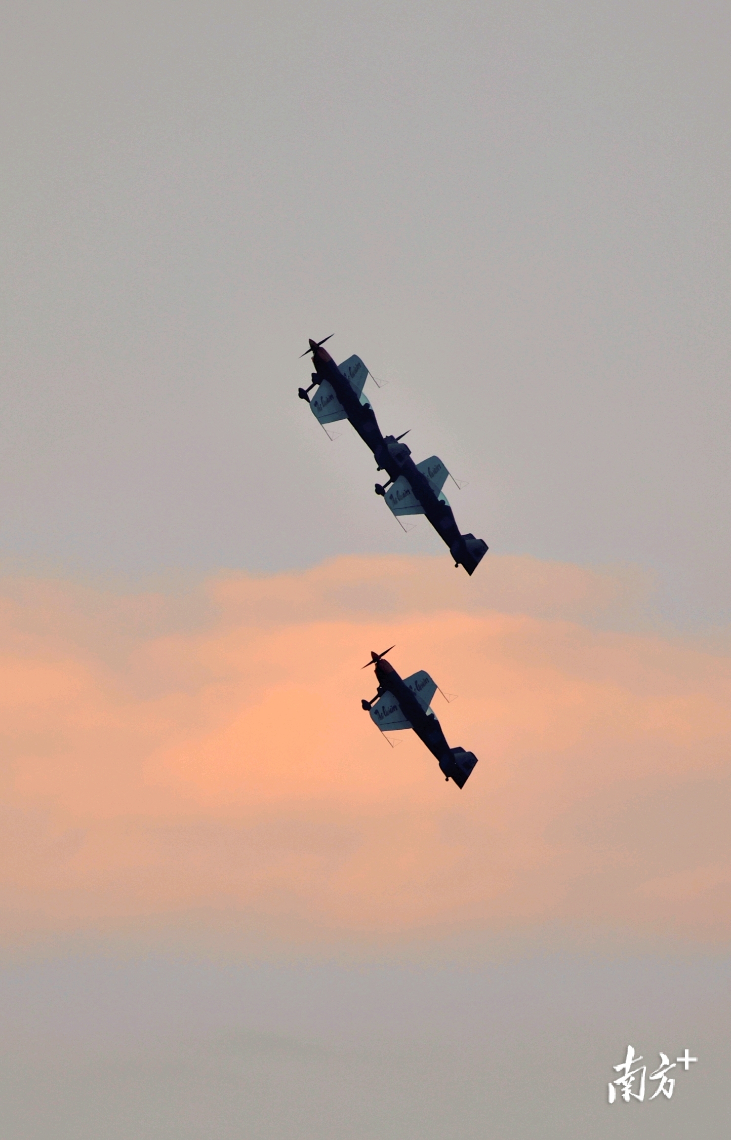 2025亚洲通用航空展将于下周在珠海启幕。11月23日清晨,3架XA42特技飞机划过刚刚破晓的珠海蓝天,进行了单机翻滚、回旋,以及3机编队飞行等预演。随后,4架民用初教-6飞机也从珠海机场依次滑行升空,在晨曦中迎来其到访珠海后的首次适应性训练。