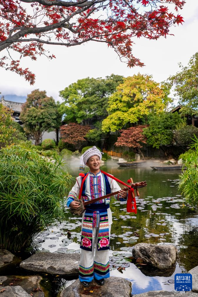 11月23日,石宝山歌会省级传承人李兆元在2025非遗品牌推广周上弹唱。