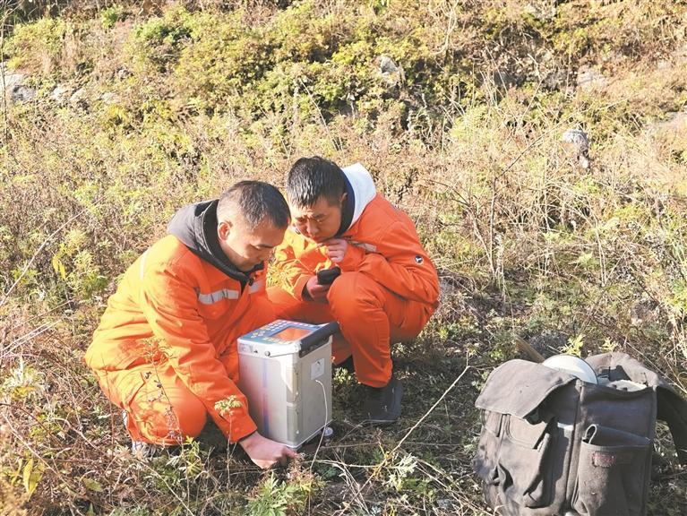 11月19日,午后的阳光直射在头顶,陕西地矿第二综合物探大队有限公司技术员张献之、程斌穿行在山林间。尽管气温低于零摄氏度,但两人的额头上满是汗水。