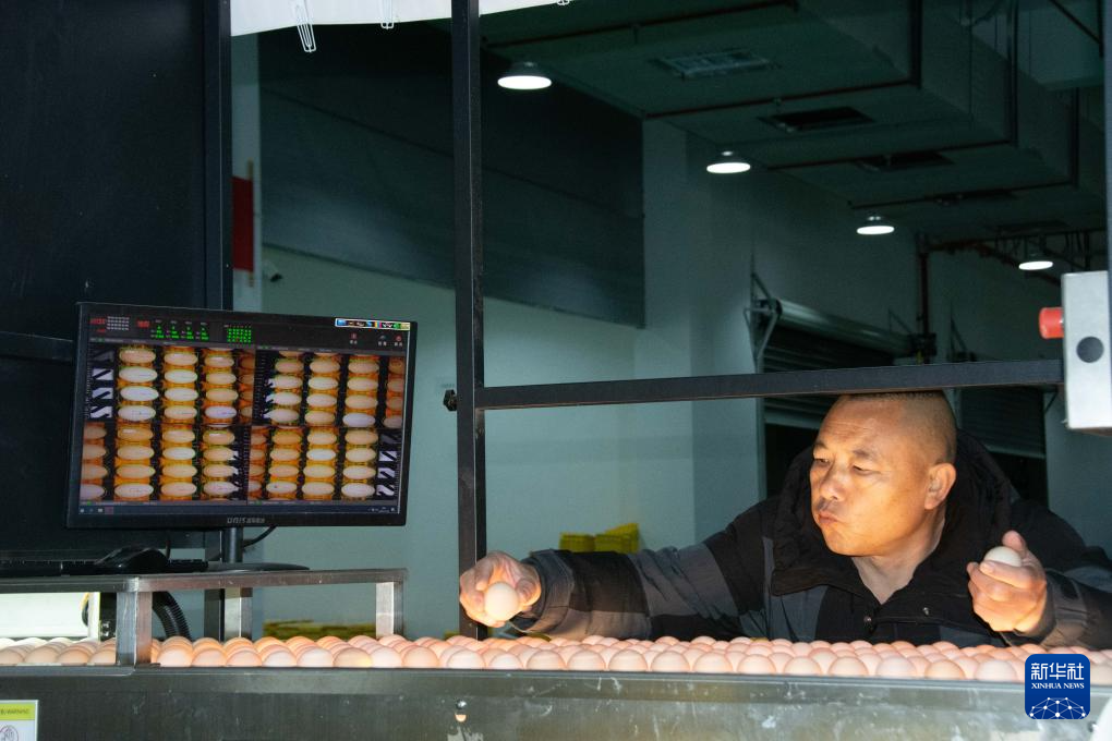 11月28日,在冷水灘區一雞蛋分揀中心,工作人員在人工檢測雞蛋。新華社記者 柳王敏 攝