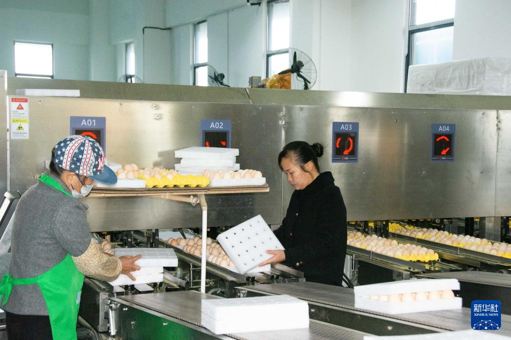 11月28日,在冷水灘區一雞蛋分揀中心,工作人員在給清洗殺菌後的雞蛋打包。新華社記者 柳王敏 攝