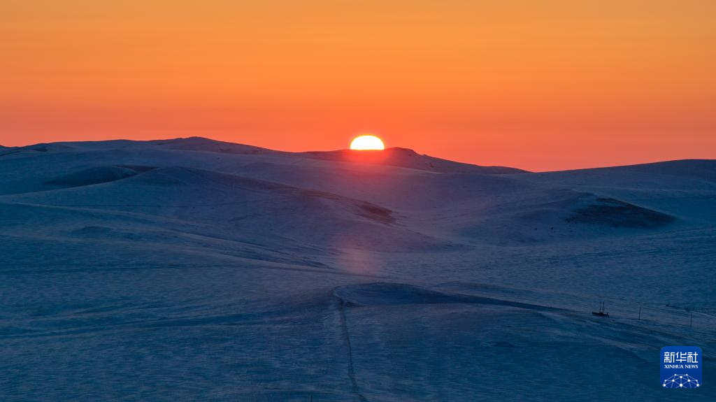 这是12月3日在内蒙古呼伦贝尔市陈巴尔虎旗拍摄的呼伦贝尔大草原日出风光(无人机照片)。
