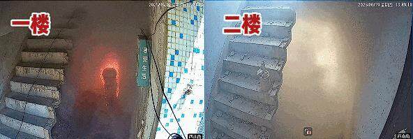 180秒后:无人机热成像显示,旧国标电动自行车燃烧的高温区域已覆盖实验楼的一楼至四楼。