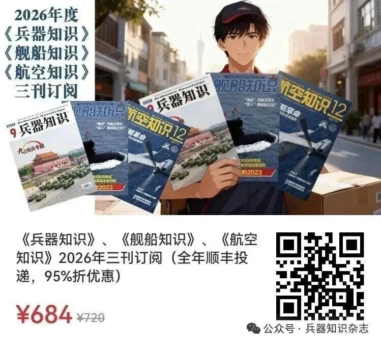 OCR:2026年度 《兵器知识 ? 《舰船知识 1 《航空知识》 见船知品 航空知识12 三刊订阅 “ 贝船无吃克 航空知识12 航宰命 9兵器知识 ”试次 樱革命 九王阅兵专题 的2023 《兵器知识》 《舰船知识》、 《航空 知识》2026年三刊订阅(全年顺丰投 递,95%折优惠) ¥684 ¥720 公众号·兵器知识杂志
