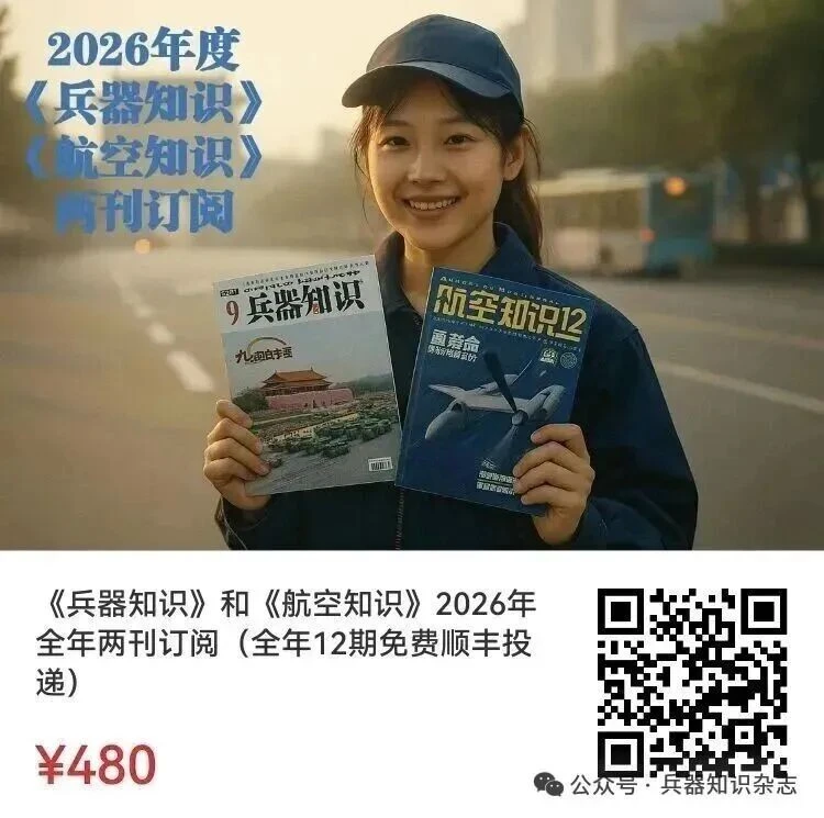OCR:2026年度 兵器知识》 航空知识》 两刊订阅 航空知识12 9兵器知识 通發命 九南白 《兵器知识》和《航空知识》2026年 全年两刊订阅(全年12期免费顺丰投 递) ¥480 公众号 杂志