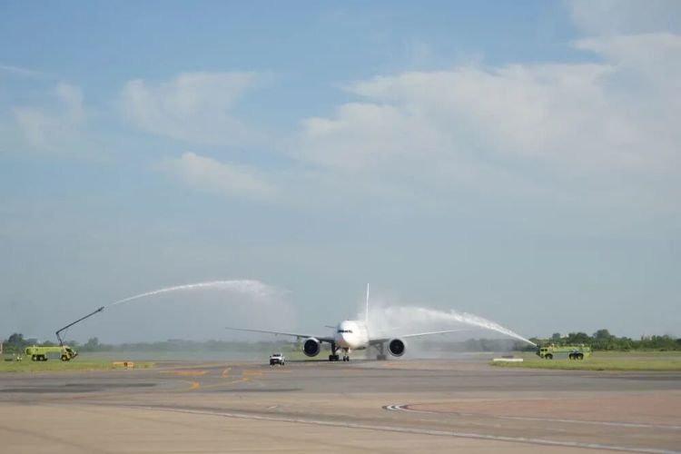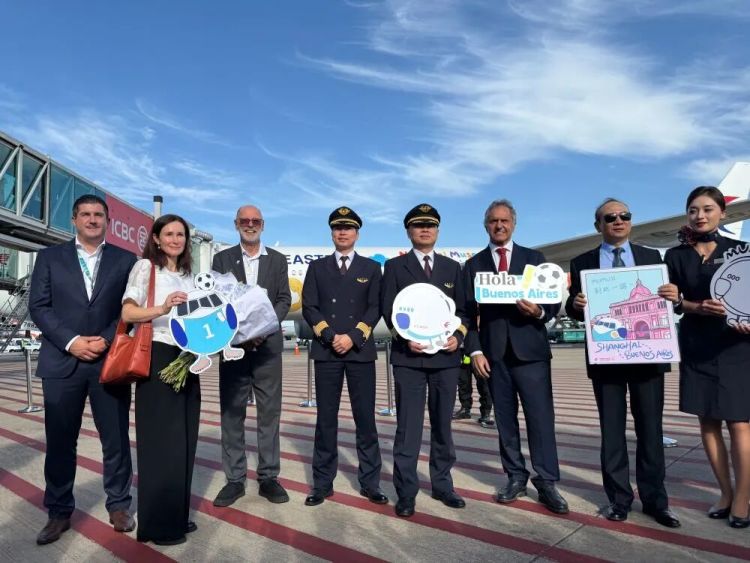 首航航班抵达阿根廷布宜诺斯艾利斯后的纪念活动。新华社发