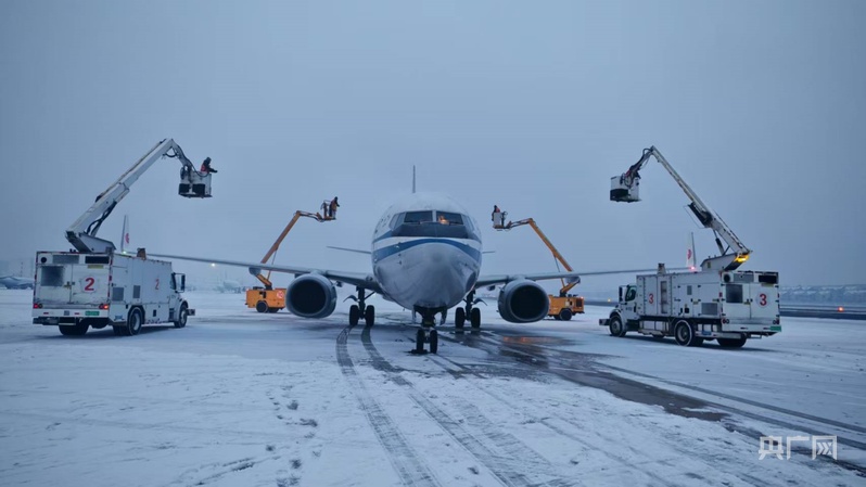 大连机场对航空器关键区域开展除冰雪作业(央广网发 鞠邦鹤 摄)