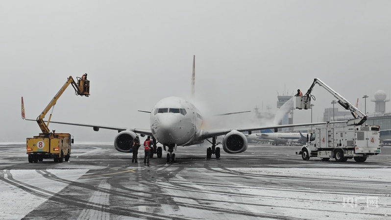 降雪期间,大连机场严格落实“边下边清、雪停场净”工作要求,同步启动航空器定点除冰与飞行区除雪等作业程序。重点对跑道、滑行道等重点区域实施不间断清扫,对机翼、机身、水平安定面、方向舵等航空器关键区域开展除冰雪作业。截至13日8时,出动吹雪车,三合一除雪车、洒布车等18台,使用场道除冰液31吨,对跑道、滑行道、各联络道进行不间断除雪作业,完成道面评估1次。出动除冰车12台次,完成航空器除冰25架次。