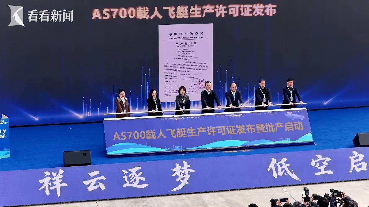 OCR:看看新闻 AS700载人飞艇生产许可证发布 中国民用航空局 CVILAVAHIONAPTRAONOFCHENA 生产许可证 TA OHI #牌 梦 名航 AS700载人飞艇生产许可证发布暨批产启动 低空启 祥云逐梦