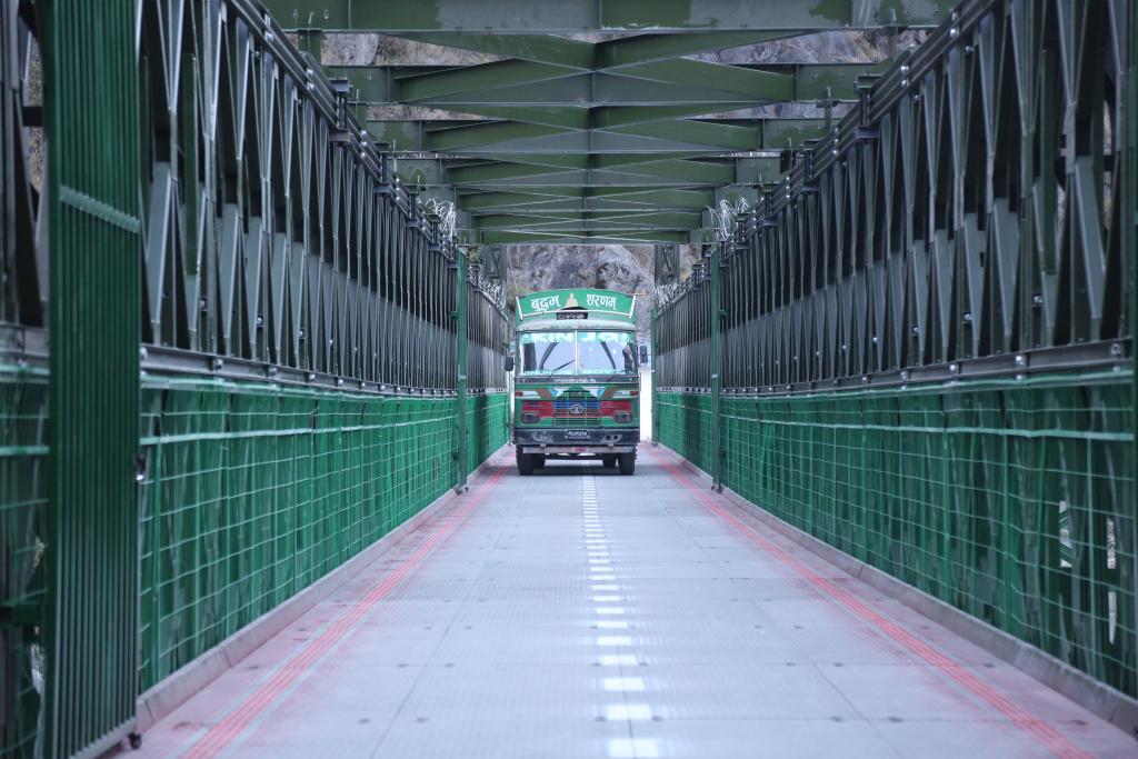 2026年1月1日,一辆尼泊尔卡车通过热索临时便桥驶向中国吉隆口岸。