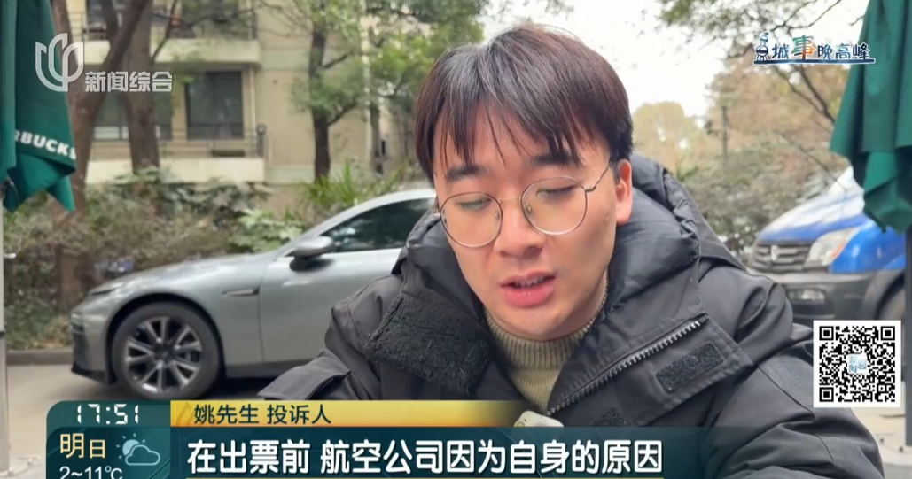 OCR:城事晚高峰 新闻综合 RBUCKA 17:51 姚先生投诉人 明日 在出票前 门 航空公司因为自身的原因 2~11℃