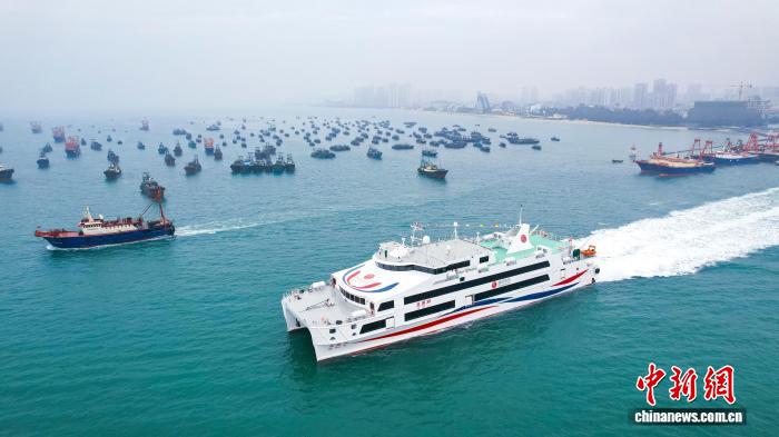 2月5日,广西北海—涠洲岛航线的新客轮“北游36”轮首航。中新社记者 翟李强 摄