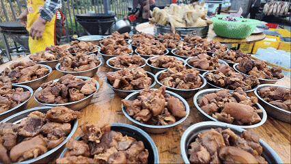 年会上硬菜满桌,犒劳园区上下辛苦一年的一线员工。