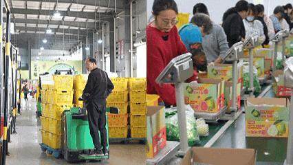 吴姨是一线的生鲜分拣员,家里种着几亩地,不仅结的果子卖来创鲜,自己也在这里打一份工,她说“家里挣,这里挣,都能挣”。